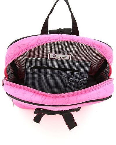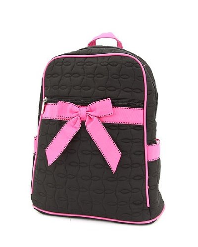 Belvah Large Quilted Leaf Pattern Solid Color Backpack - Choice of Colors (Black/Pink)