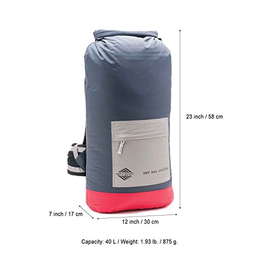 Aqua Quest Rio - 100% Waterproof Dry Bag Backpack - 40 L, Lightweight, Durable, Comfortable, Versatile - Charcoal/Red + Reflective